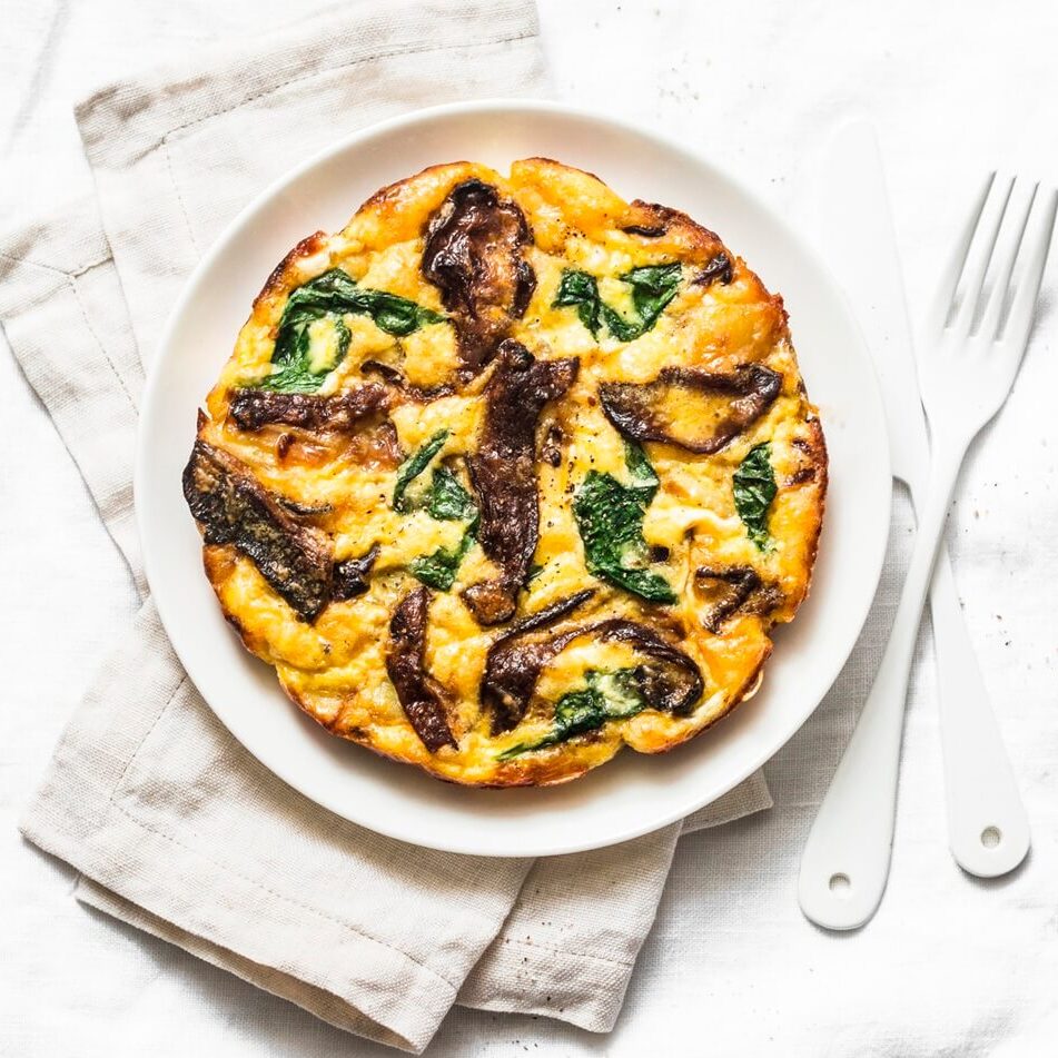 - Filling(s) of your choice e.g. cheese*, mushrooms, spinach, ham*, peppers, onion (you might want to pre-cook any vegetables before adding them, as they won't be in the pan with the egg long enough to cook through)